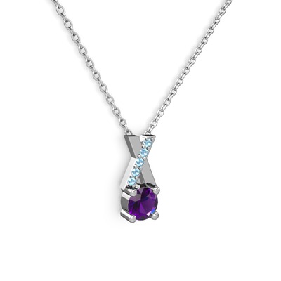 Ametist ve akuamarin 8 ayar beyaz altın kolye (40 cm beyaz altın rolo zincir)