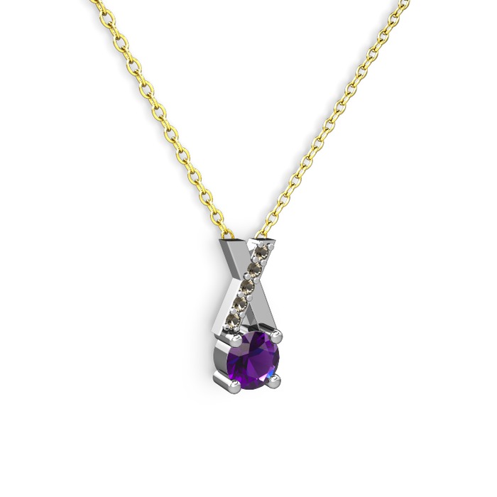 Ametist ve dumanlı kuvars 18 ayar beyaz altın kolye (40 cm altın rolo zincir)