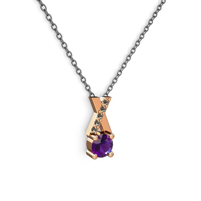Ametist ve dumanlı kuvars 18 ayar rose altın kolye (40 cm gümüş rolo zincir)