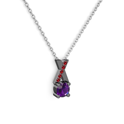 Ametist ve garnet 925 ayar siyah rodyum kaplama gümüş kolye (40 cm beyaz altın rolo zincir)