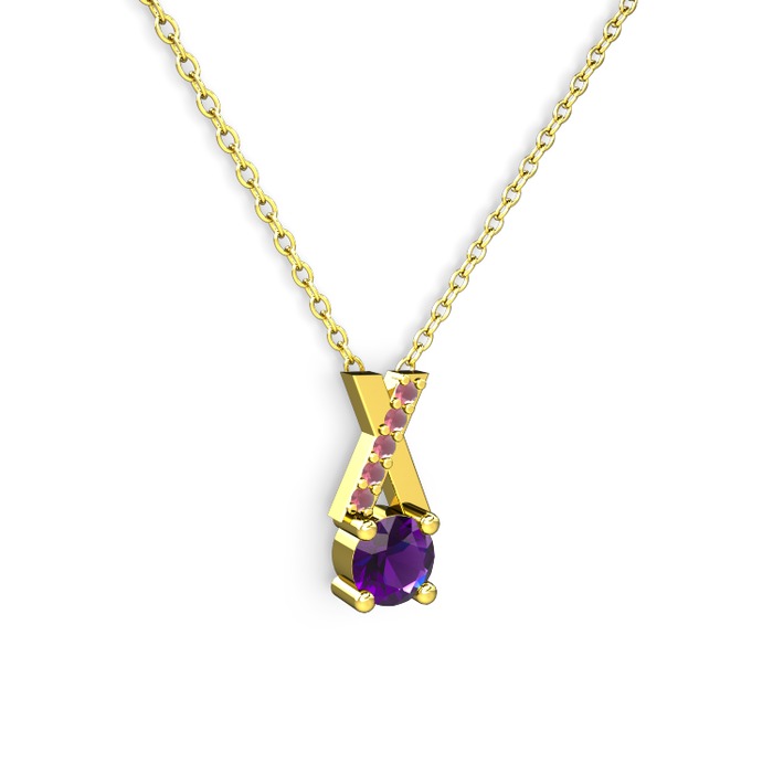 Ametist ve kök yakut 925 ayar altın kaplama gümüş kolye (40 cm altın rolo zincir)