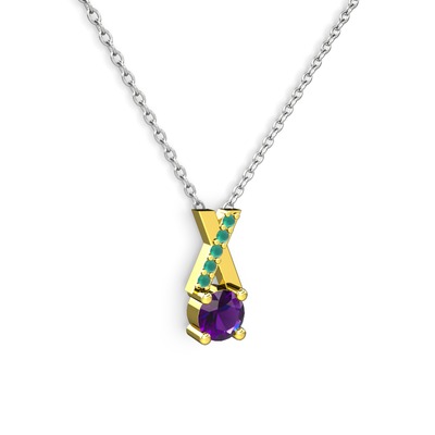 Ametist ve kök zümrüt 18 ayar altın kolye (40 cm gümüş rolo zincir)