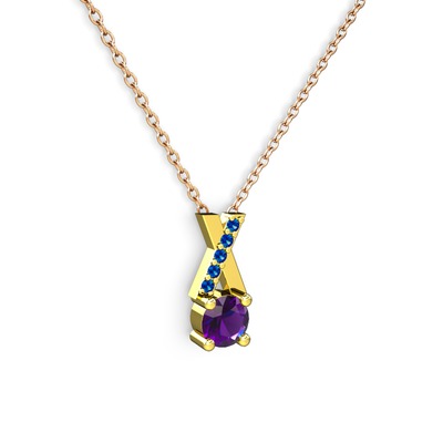 Ametist ve lab safir 18 ayar altın kolye (40 cm gümüş rolo zincir)