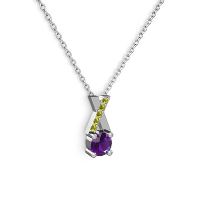 Ametist ve peridot 18 ayar beyaz altın kolye (40 cm beyaz altın rolo zincir)