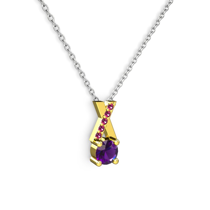 Ametist ve rodolit garnet 18 ayar altın kolye (40 cm beyaz altın rolo zincir)