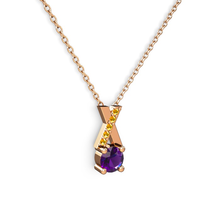 Ametist ve sitrin 925 ayar rose altın kaplama gümüş kolye (40 cm gümüş rolo zincir)