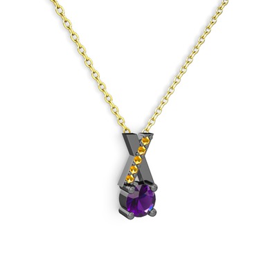 Ametist ve sitrin 925 ayar siyah rodyum kaplama gümüş kolye (40 cm altın rolo zincir)