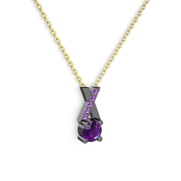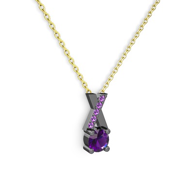 Ametist 925 ayar siyah rodyum kaplama gümüş kolye (40 cm altın rolo zincir)