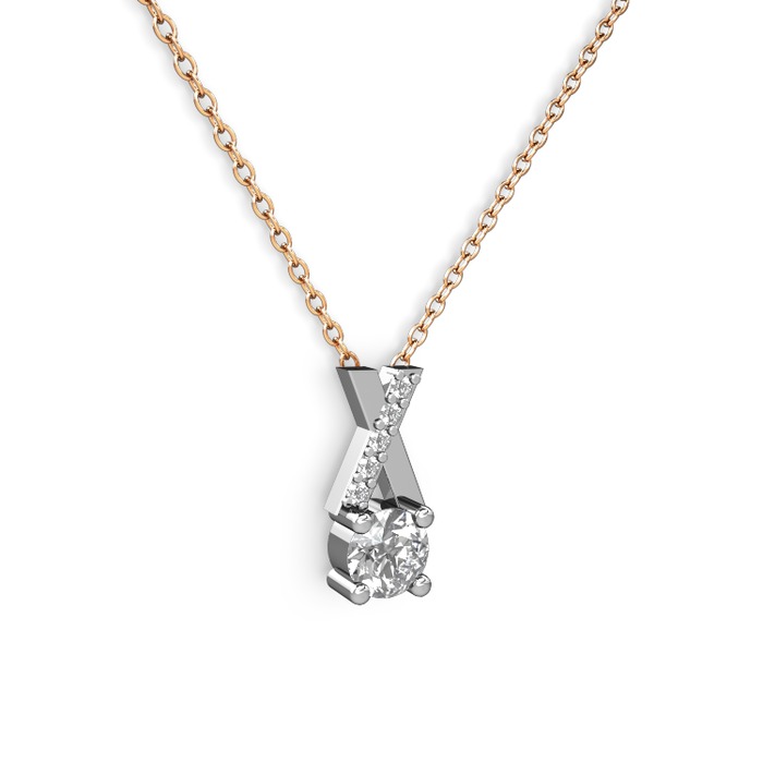 Beyaz zirkon 14 ayar beyaz altın kolye (40 cm rose altın rolo zincir)