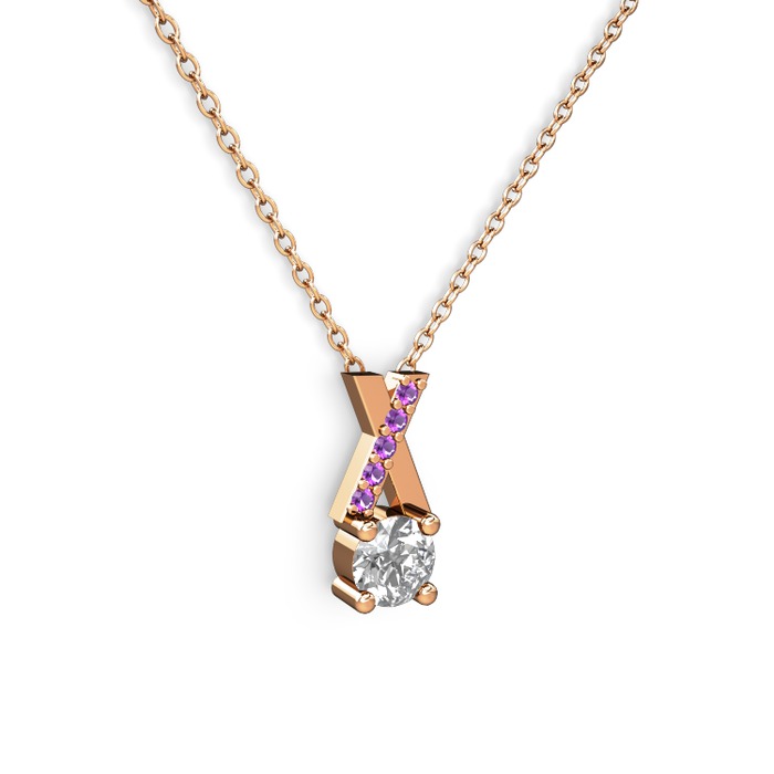 Beyaz zirkon ve ametist 14 ayar rose altın kolye (40 cm gümüş rolo zincir)