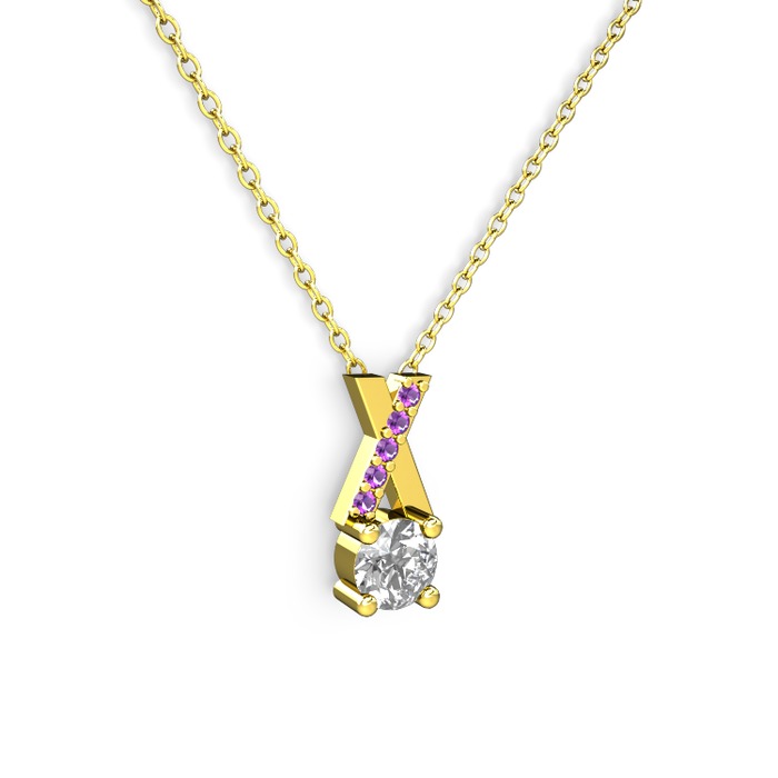 Beyaz zirkon ve ametist 8 ayar altın kolye (40 cm altın rolo zincir)