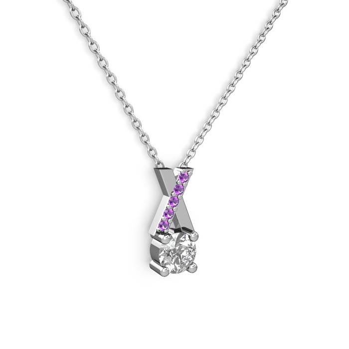 Beyaz zirkon ve ametist 925 ayar gümüş kolye (40 cm gümüş rolo zincir)