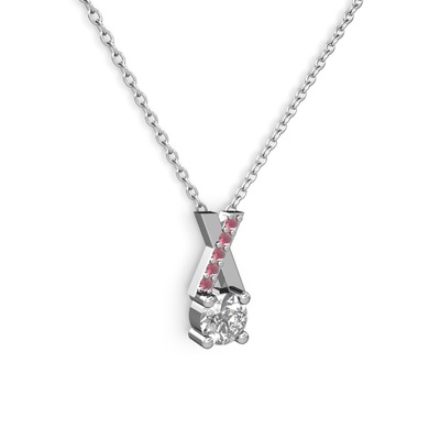 Beyaz zirkon ve kök yakut 14 ayar beyaz altın kolye (40 cm beyaz altın rolo zincir)