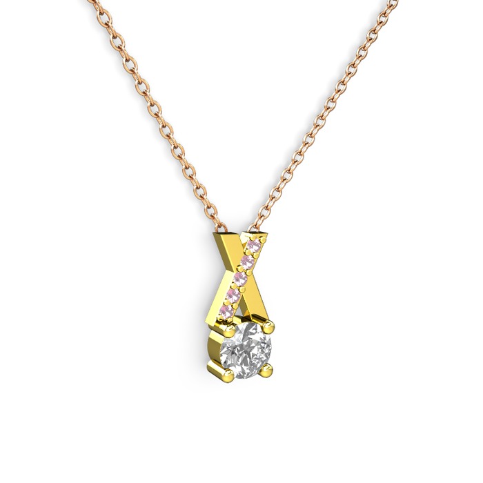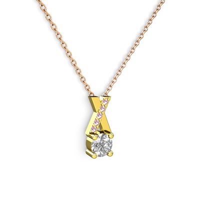 Beyaz zirkon ve pembe kuvars 14 ayar altın kolye (40 cm rose altın rolo zincir)