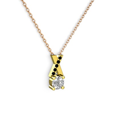 Beyaz zirkon ve siyah zirkon 14 ayar altın kolye (40 cm rose altın rolo zincir)