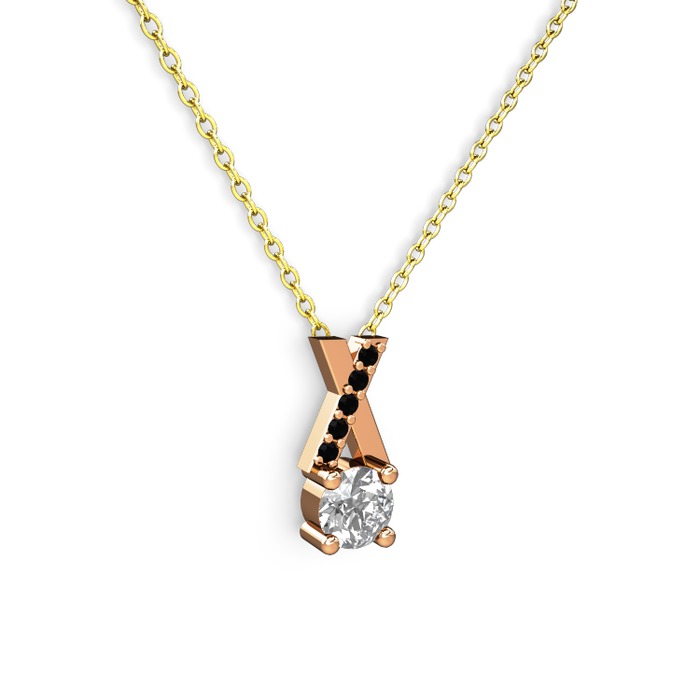 Beyaz zirkon ve siyah zirkon 18 ayar rose altın kolye (40 cm altın rolo zincir)