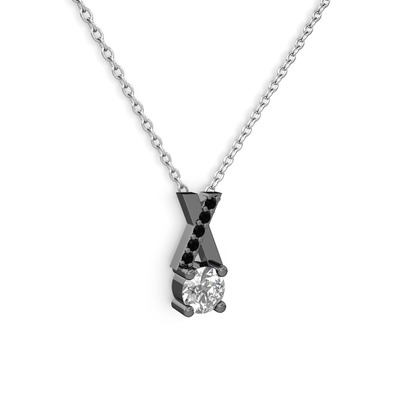 Beyaz zirkon ve siyah zirkon 925 ayar siyah rodyum kaplama gümüş kolye (40 cm beyaz altın rolo zincir)