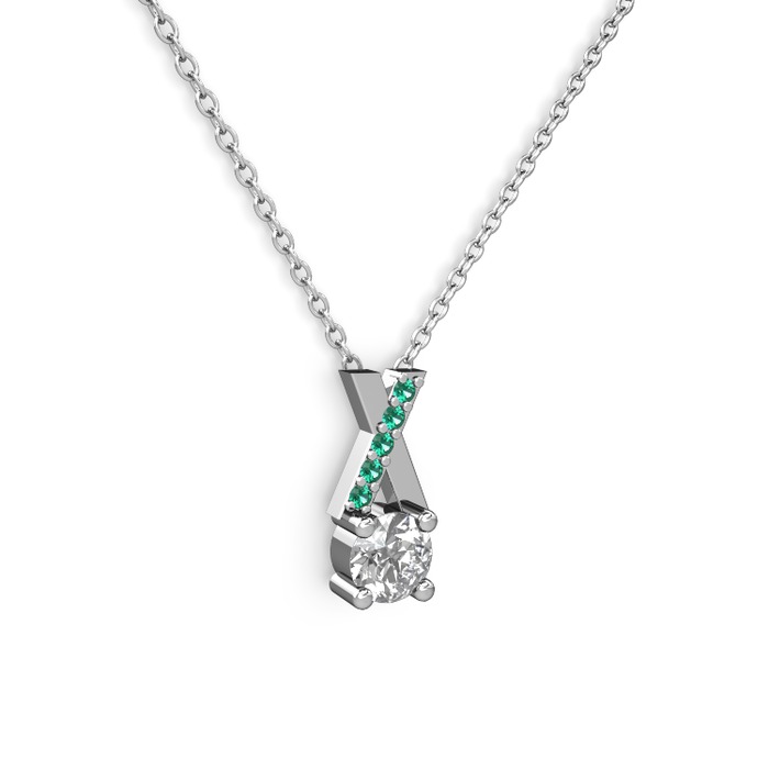 Beyaz zirkon ve yeşil kuvars 14 ayar beyaz altın kolye (40 cm beyaz altın rolo zincir)