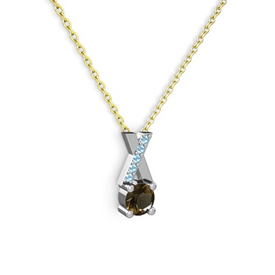 Dumanlı kuvars ve akuamarin 14 ayar beyaz altın kolye (40 cm altın rolo zincir)