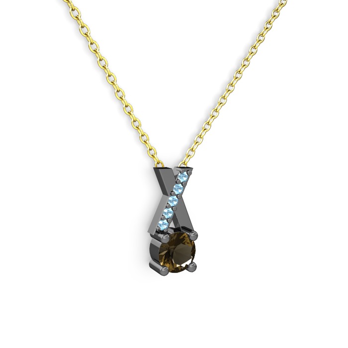 Dumanlı kuvars ve akuamarin 925 ayar siyah rodyum kaplama gümüş kolye (40 cm gümüş rolo zincir)