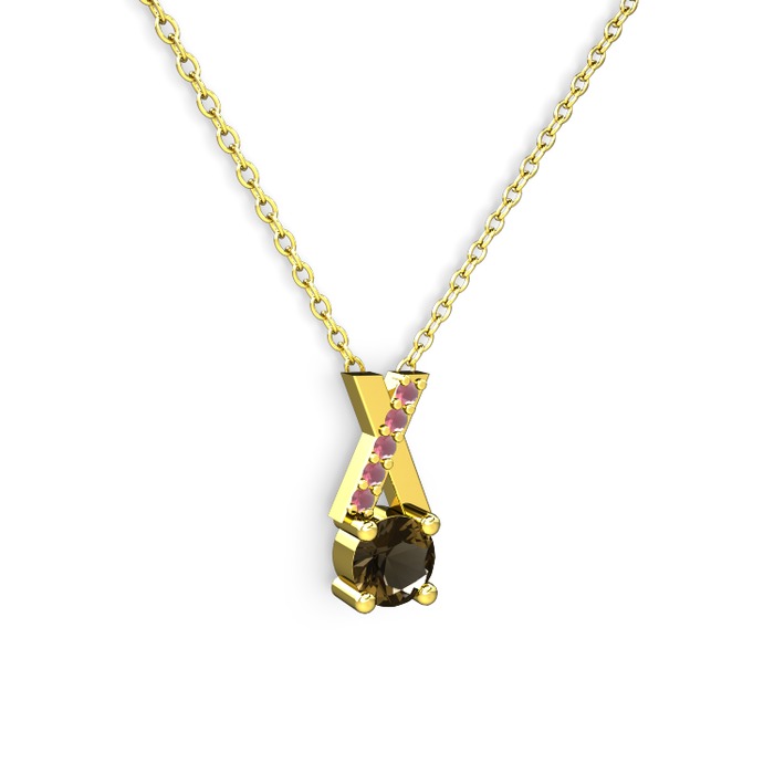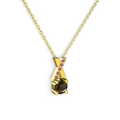 Dumanlı kuvars ve kök yakut 8 ayar altın kolye (40 cm altın rolo zincir)