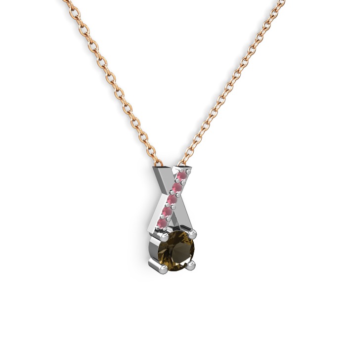 Dumanlı kuvars ve kök yakut 8 ayar beyaz altın kolye (40 cm rose altın rolo zincir)