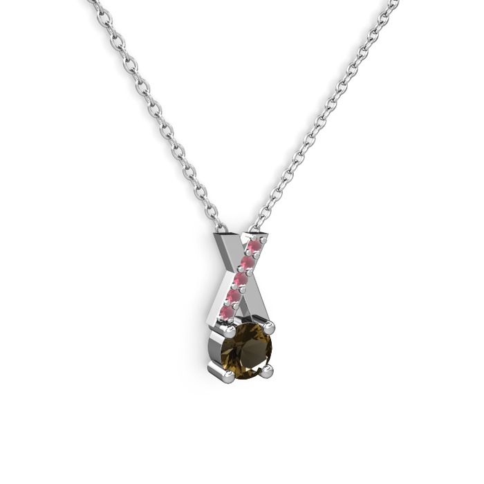 Dumanlı kuvars ve kök yakut 925 ayar gümüş kolye (40 cm beyaz altın rolo zincir)