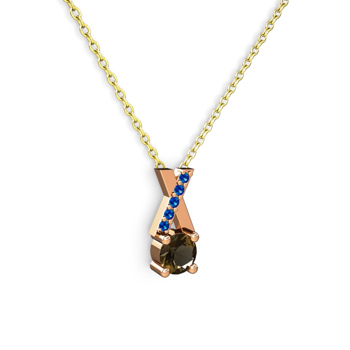 Dumanlı kuvars ve lab safir 925 ayar rose altın kaplama gümüş kolye (40 cm altın rolo zincir)
