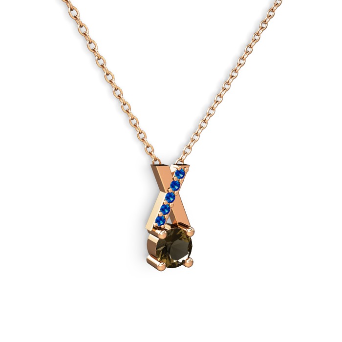 Dumanlı kuvars ve lab safir 925 ayar rose altın kaplama gümüş kolye (40 cm rose altın rolo zincir)