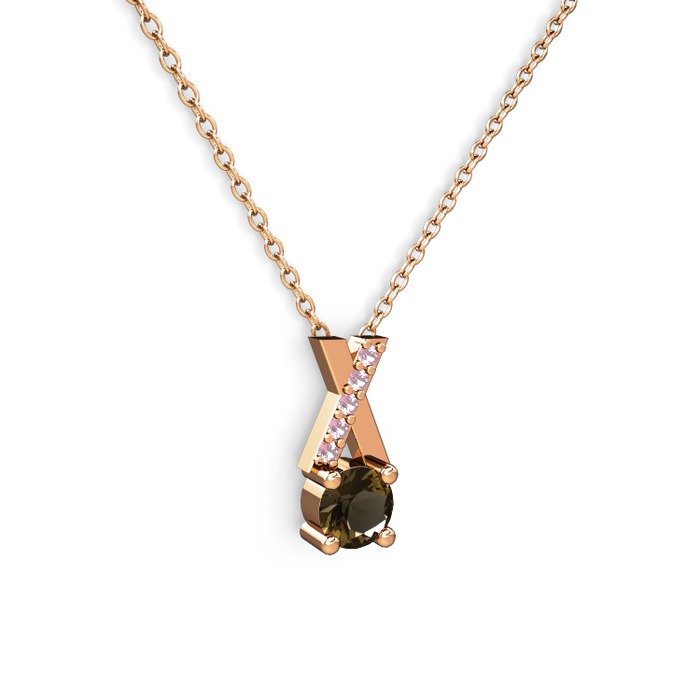 Dumanlı kuvars ve pembe kuvars 14 ayar rose altın kolye (40 cm rose altın rolo zincir)
