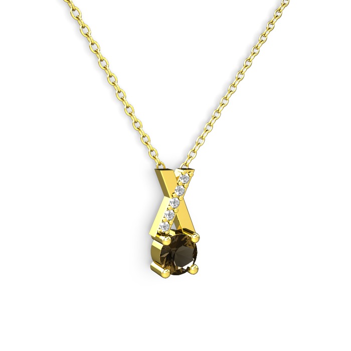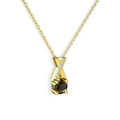 Dumanlı kuvars ve pırlanta 18 ayar altın kolye (0.075 karat, 40 cm altın rolo zincir)