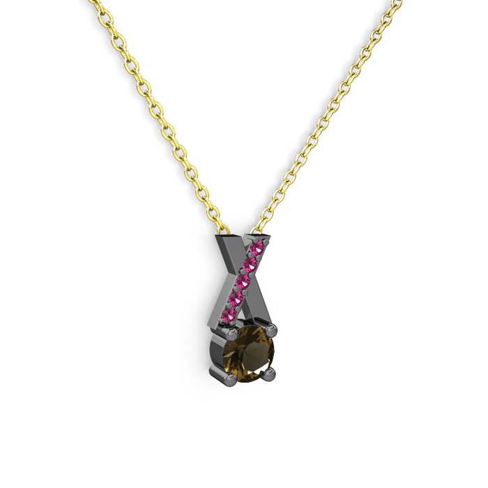 Dumanlı kuvars ve rodolit garnet 925 ayar siyah rodyum kaplama gümüş kolye (40 cm altın rolo zincir)