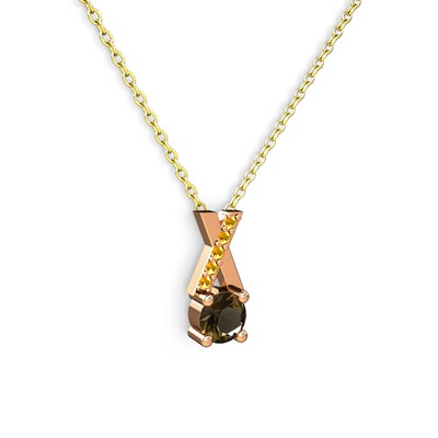 Dumanlı kuvars ve sitrin 925 ayar rose altın kaplama gümüş kolye (40 cm altın rolo zincir)