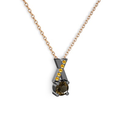 Dumanlı kuvars ve sitrin 925 ayar siyah rodyum kaplama gümüş kolye (40 cm rose altın rolo zincir)