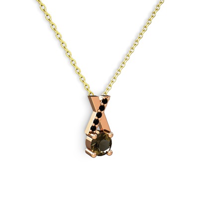 Dumanlı kuvars ve siyah zirkon 18 ayar rose altın kolye (40 cm altın rolo zincir)