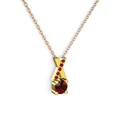 Garnet 925 ayar altın kaplama gümüş kolye (40 cm rose altın rolo zincir)