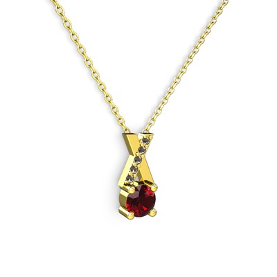 Garnet ve dumanlı kuvars 14 ayar altın kolye (40 cm gümüş rolo zincir)