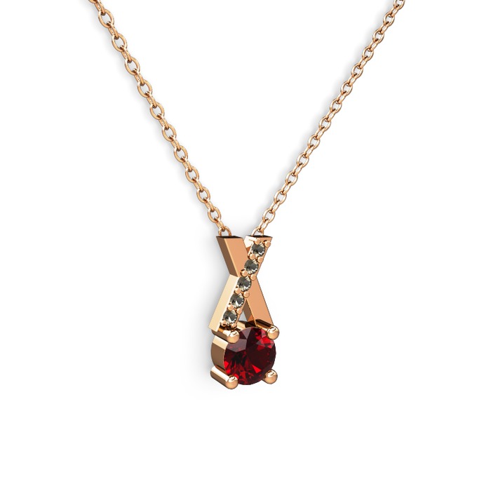 Garnet ve dumanlı kuvars 8 ayar rose altın kolye (40 cm gümüş rolo zincir)