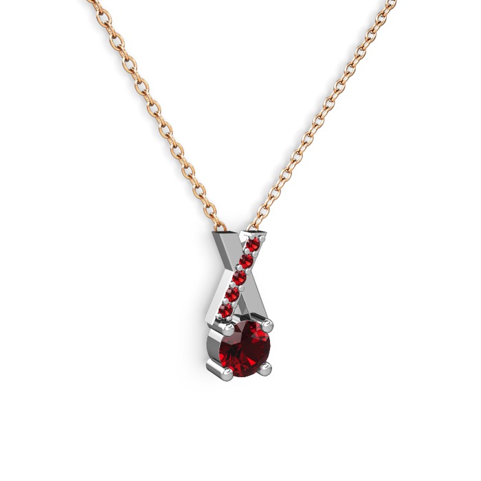 Garnet 925 ayar gümüş kolye (40 cm rose altın rolo zincir)