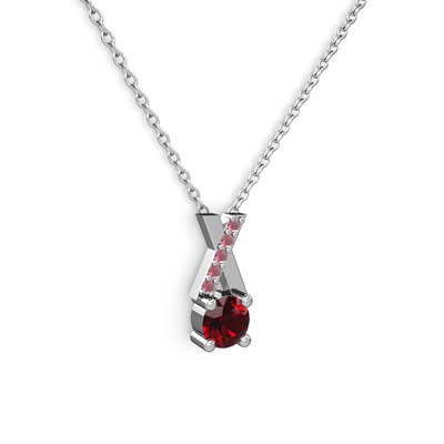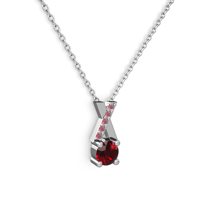 Garnet ve kök yakut 18 ayar beyaz altın kolye (40 cm beyaz altın rolo zincir)