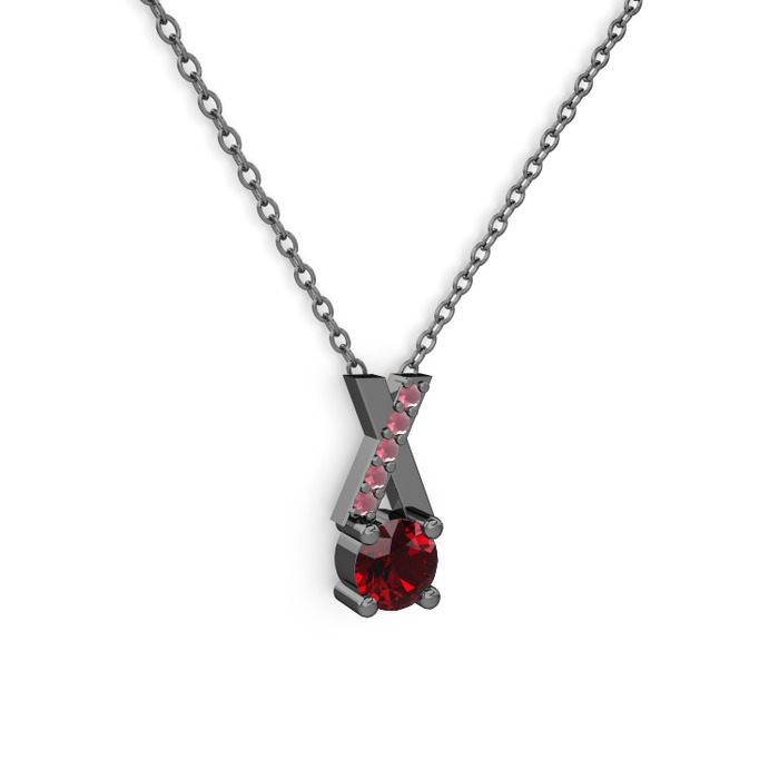 Garnet ve kök yakut 925 ayar siyah rodyum kaplama gümüş kolye (40 cm gümüş rolo zincir)