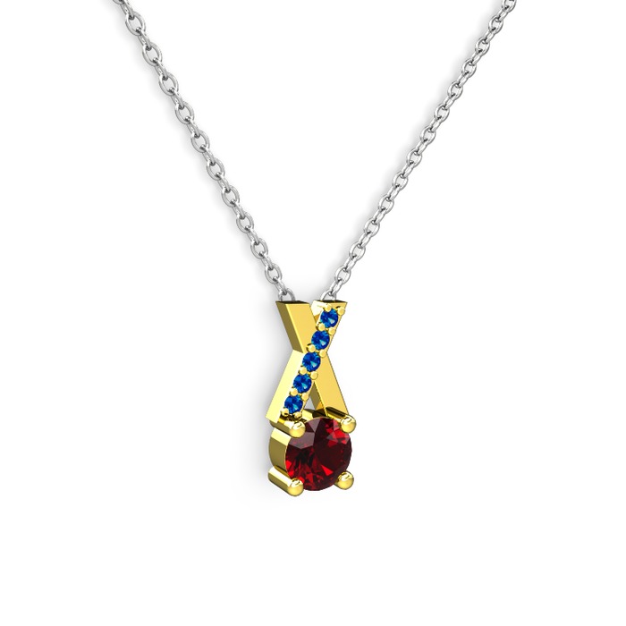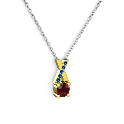 Garnet ve lab safir 14 ayar altın kolye (40 cm beyaz altın rolo zincir)