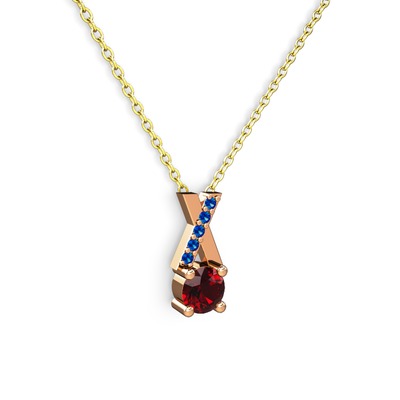 Garnet ve lab safir 18 ayar rose altın kolye (40 cm altın rolo zincir)