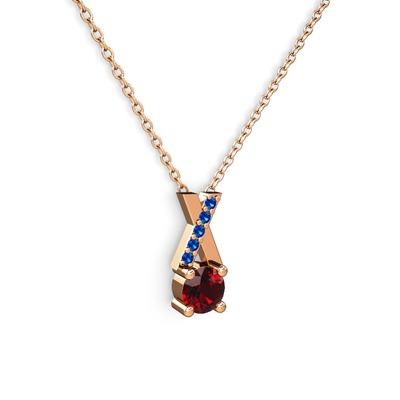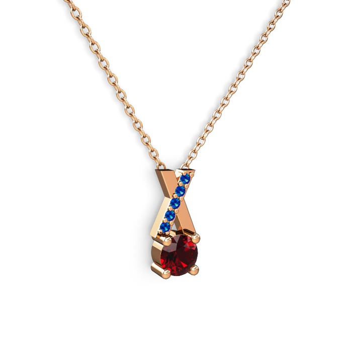 Garnet ve lab safir 18 ayar rose altın kolye (40 cm rose altın rolo zincir)