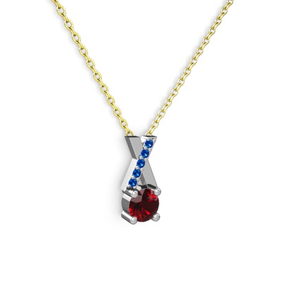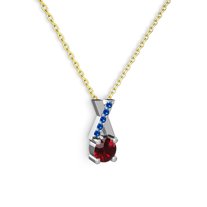 Garnet ve lab safir 925 ayar gümüş kolye (40 cm altın rolo zincir)