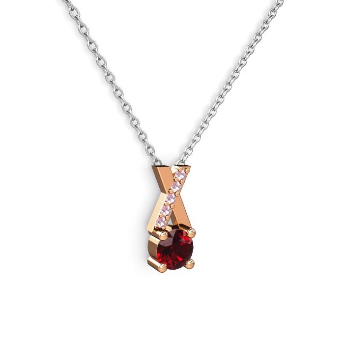 Garnet ve pembe kuvars 8 ayar rose altın kolye (40 cm gümüş rolo zincir)