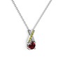 Garnet ve peridot 8 ayar beyaz altın kolye (40 cm gümüş rolo zincir)