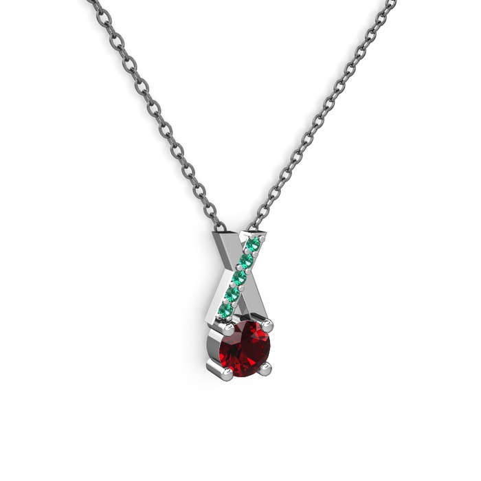 Garnet ve yeşil kuvars 18 ayar beyaz altın kolye (40 cm gümüş rolo zincir)
