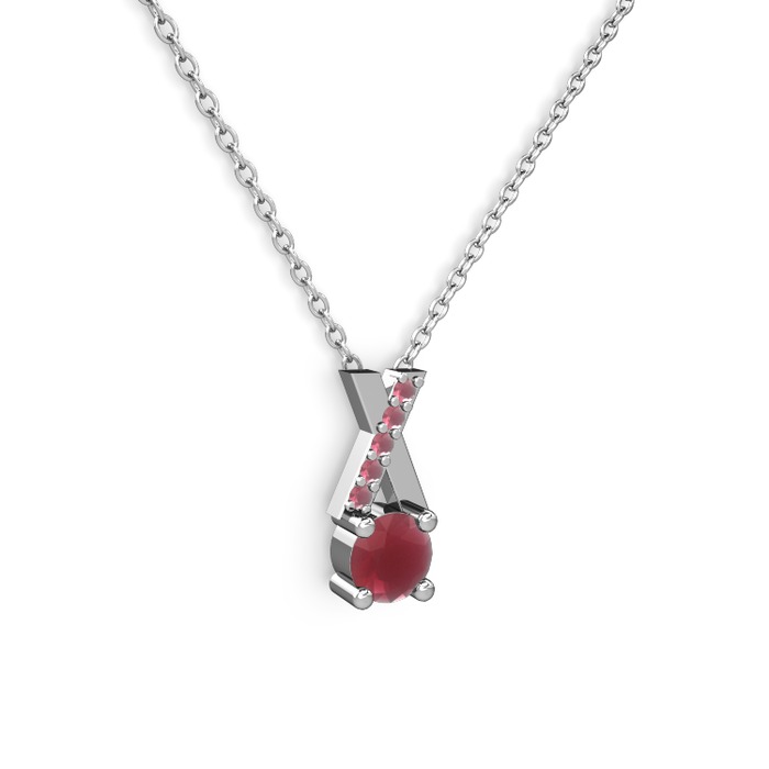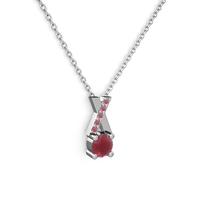 Kök yakut 14 ayar beyaz altın kolye (40 cm beyaz altın rolo zincir)