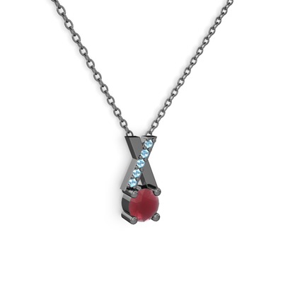 Kök yakut ve akuamarin 925 ayar siyah rodyum kaplama gümüş kolye (40 cm gümüş rolo zincir)